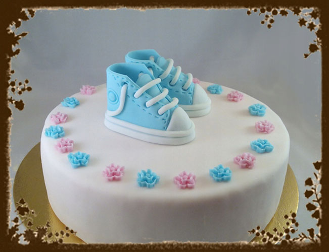 Buciki cukrowe na tort – niebieskie (chrzest, roczek)