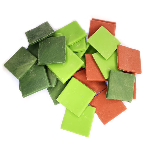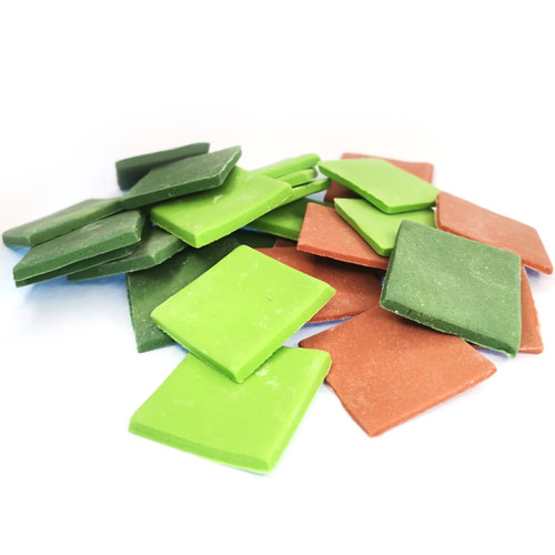 Zestaw zawiera 30 kafelków w kolorach zielonych i brązowych o wymiarze ok. 2,5cm