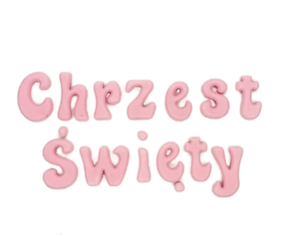 Cukrowe napisy są idealnym uzupełnieniem każdego słodkiego wypieku. W tej ofercie możesz zamówić napis Chrzest Święty w kolorze różowym.