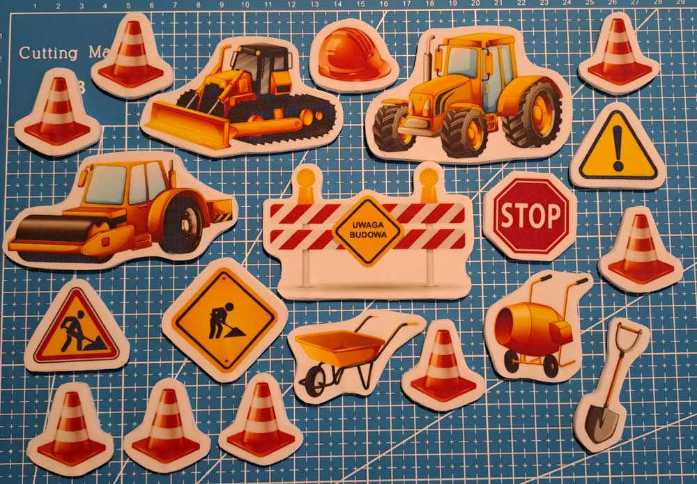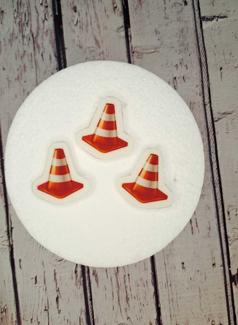 - 3 pachołki drogowe o wielkości 3 x 3 cm