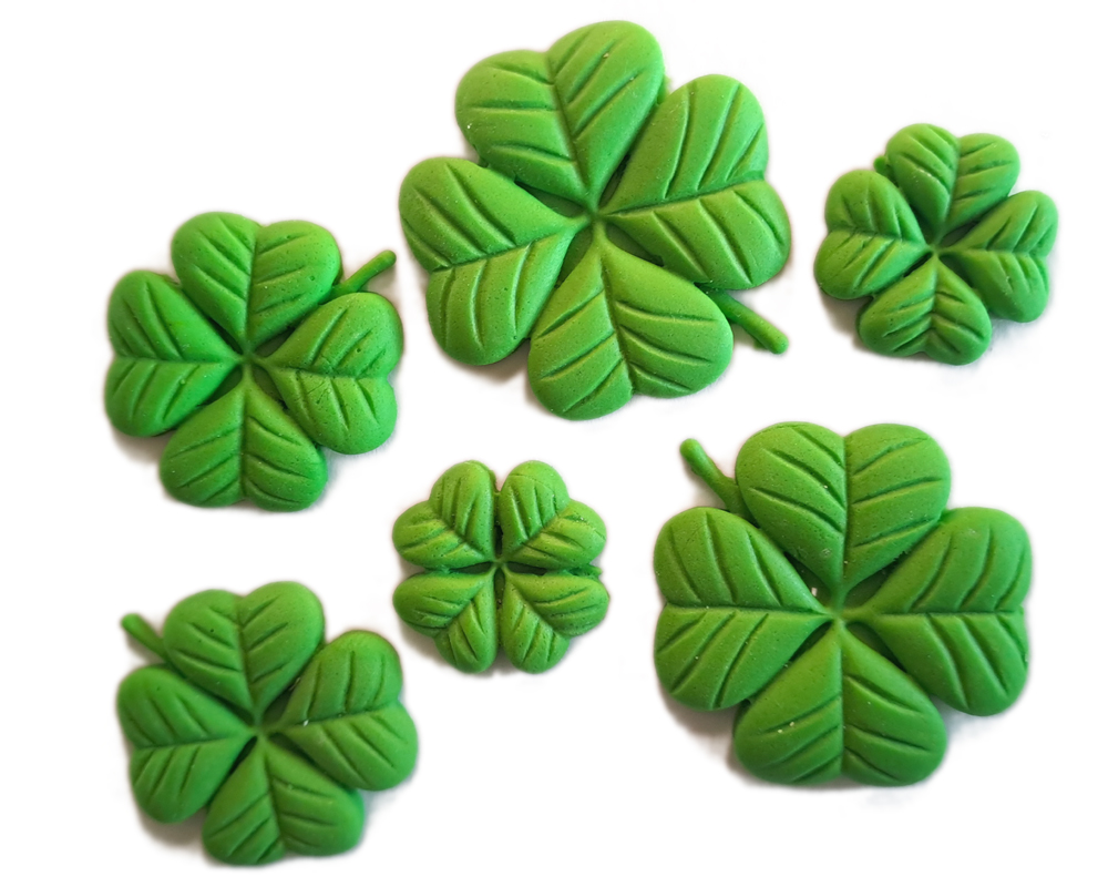 - 6 czterolistnych koniczynek w rozmiarach 4/3/2 cm