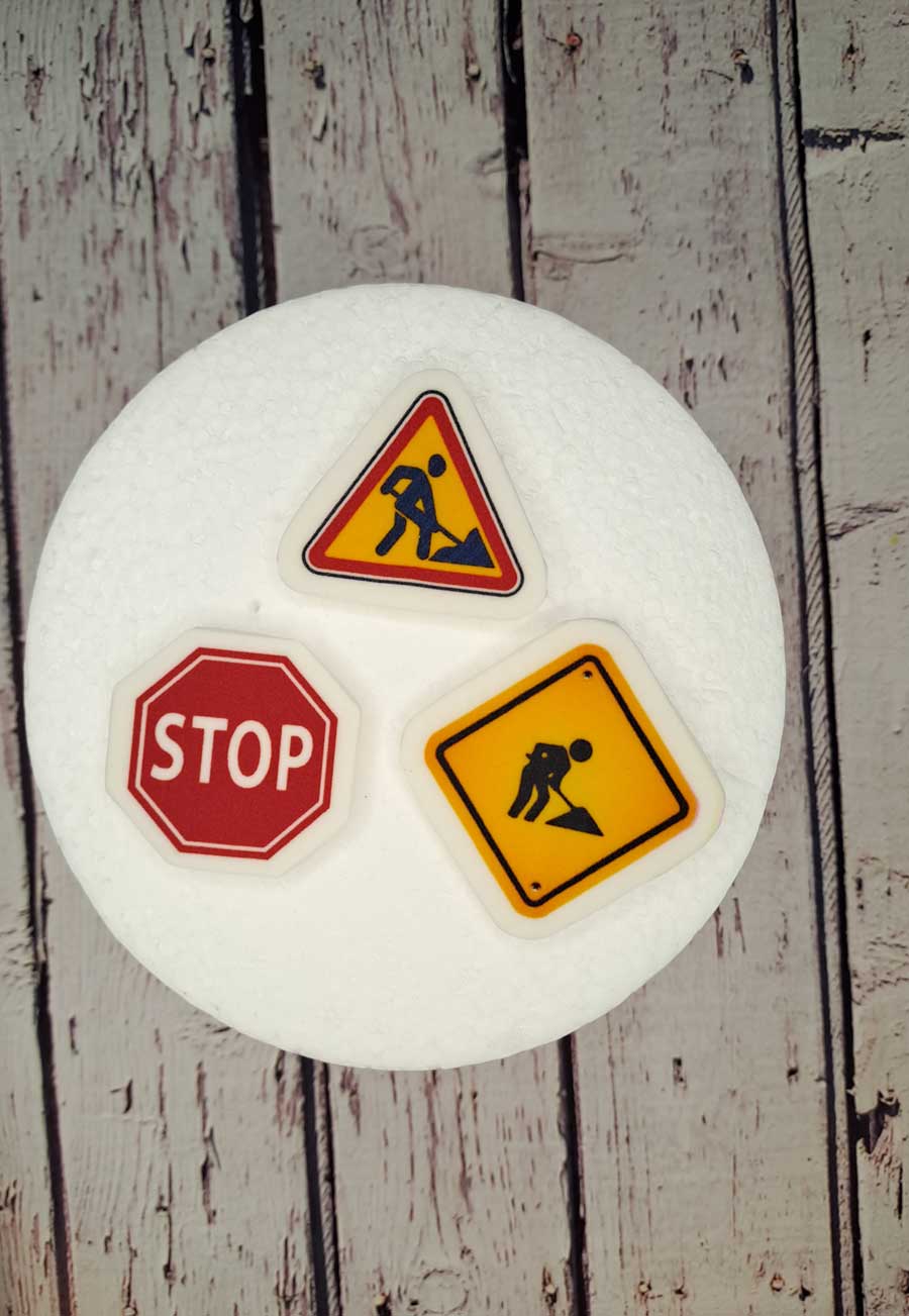 Znaki drogowe na tort topper budowa